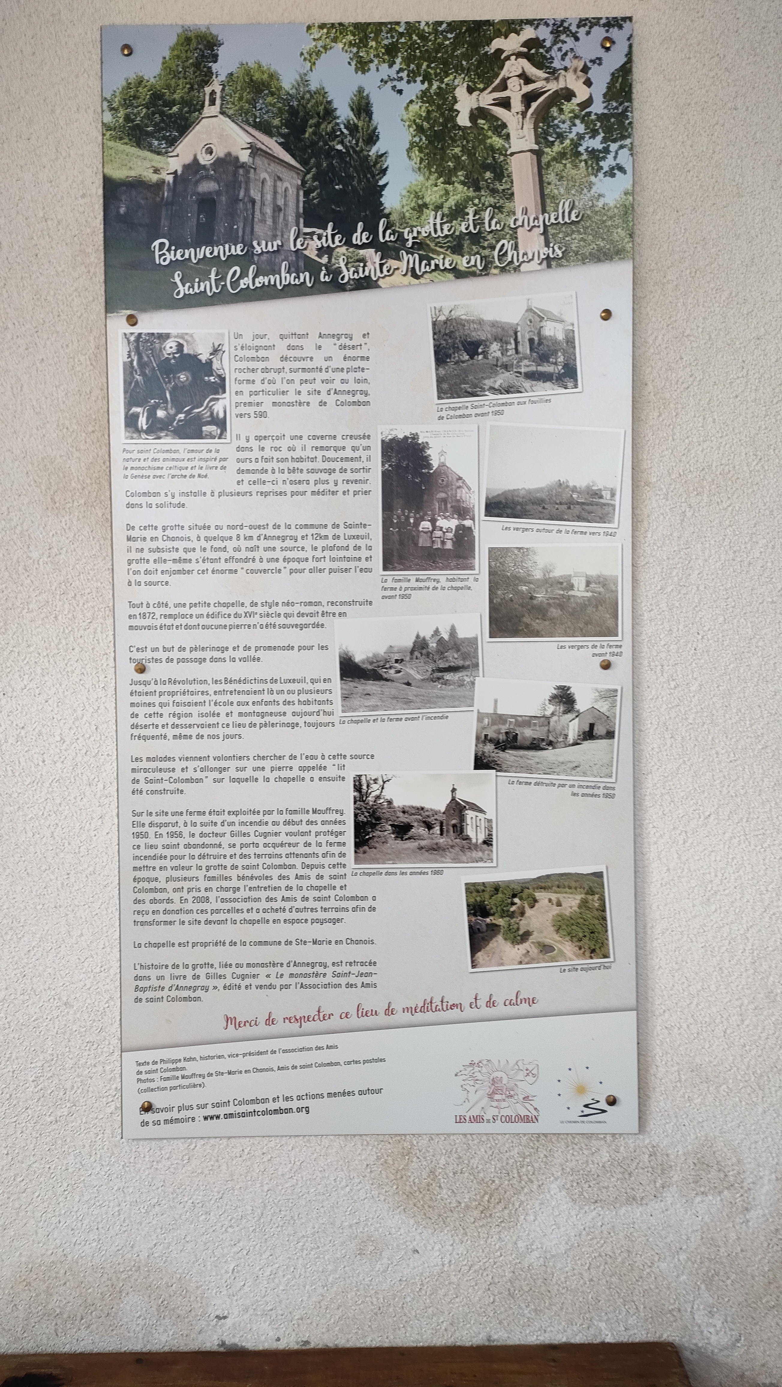 Toute petite chapelle en hommage à St Colomban, qui passa des périodes sur place en ermite. Avec reste de grotte et source