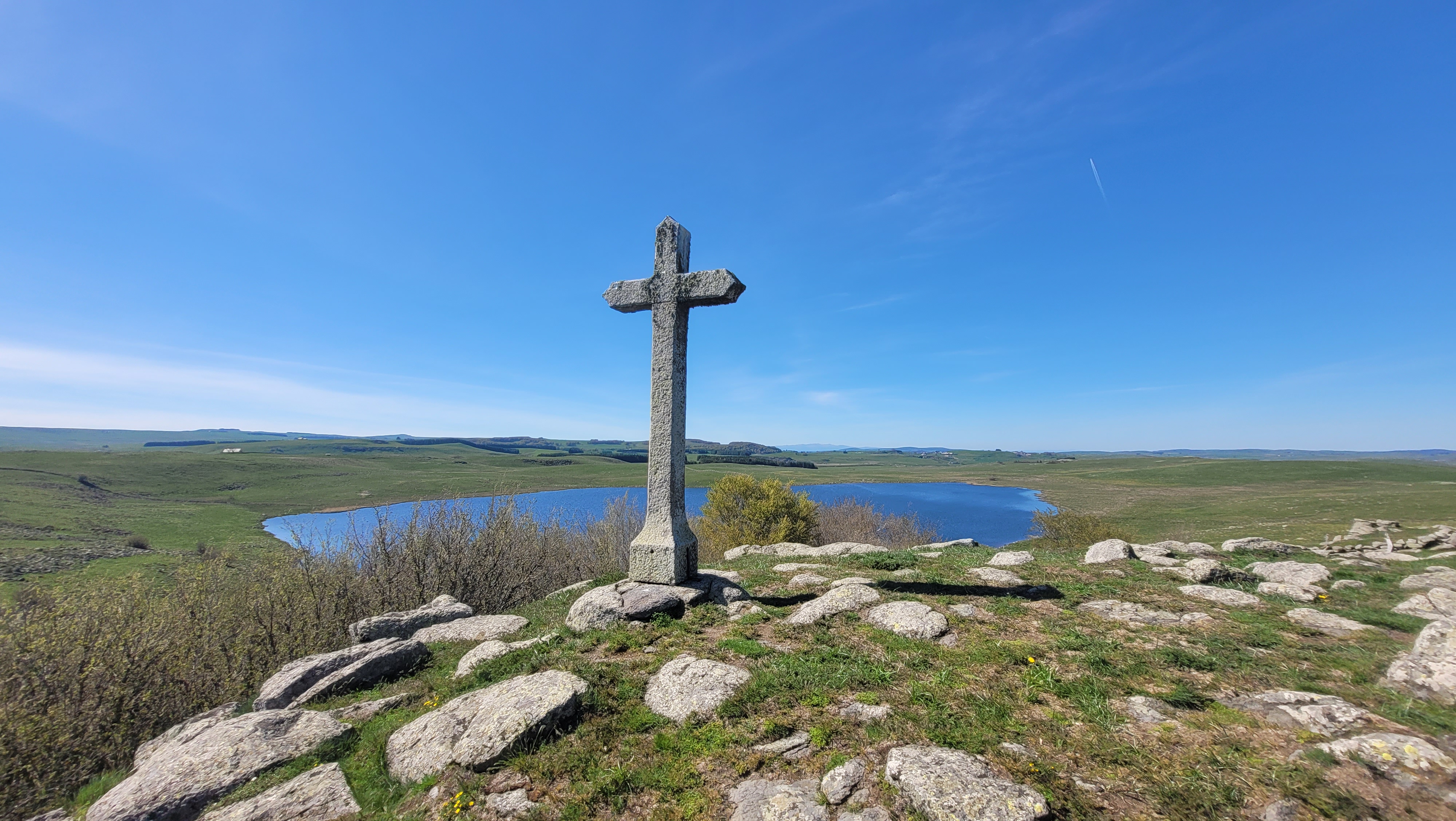 Ce site avec cette belle croix de granit qui surplombe le lac de Saint Andéol servit de décor à une scène du film 37°2 le matin réalisé en 1986 par Jean- Jacques Beinex.